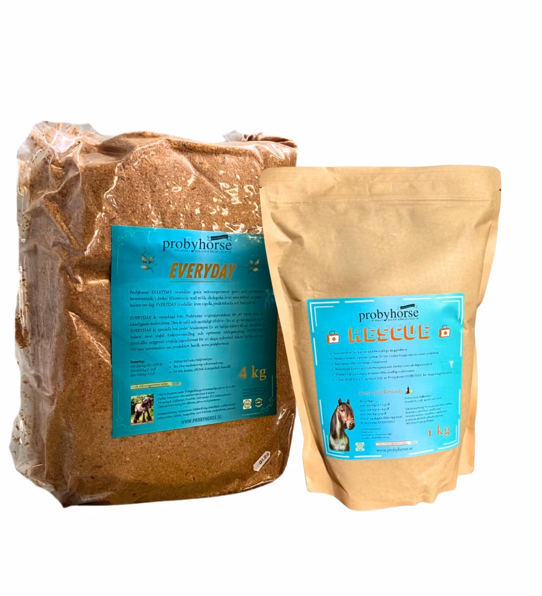 Probyhorse RESCUE ges som kur 7-10 dagar för att sedan följas upp med Probyhorse EVERYDAY under minst fyra veckor för hållbart resultat.